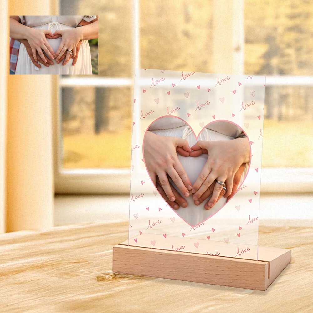 Стъклена рамка с ваша снимка във формата на сърце - Щастие, бременност
