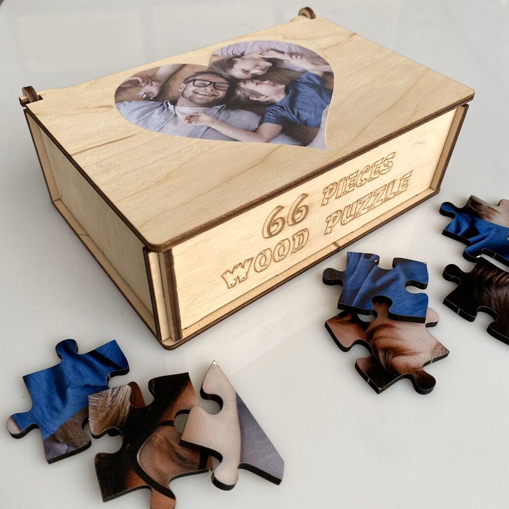 Дървен пъзел Сърце по ваша снимка с класическа форма на частите