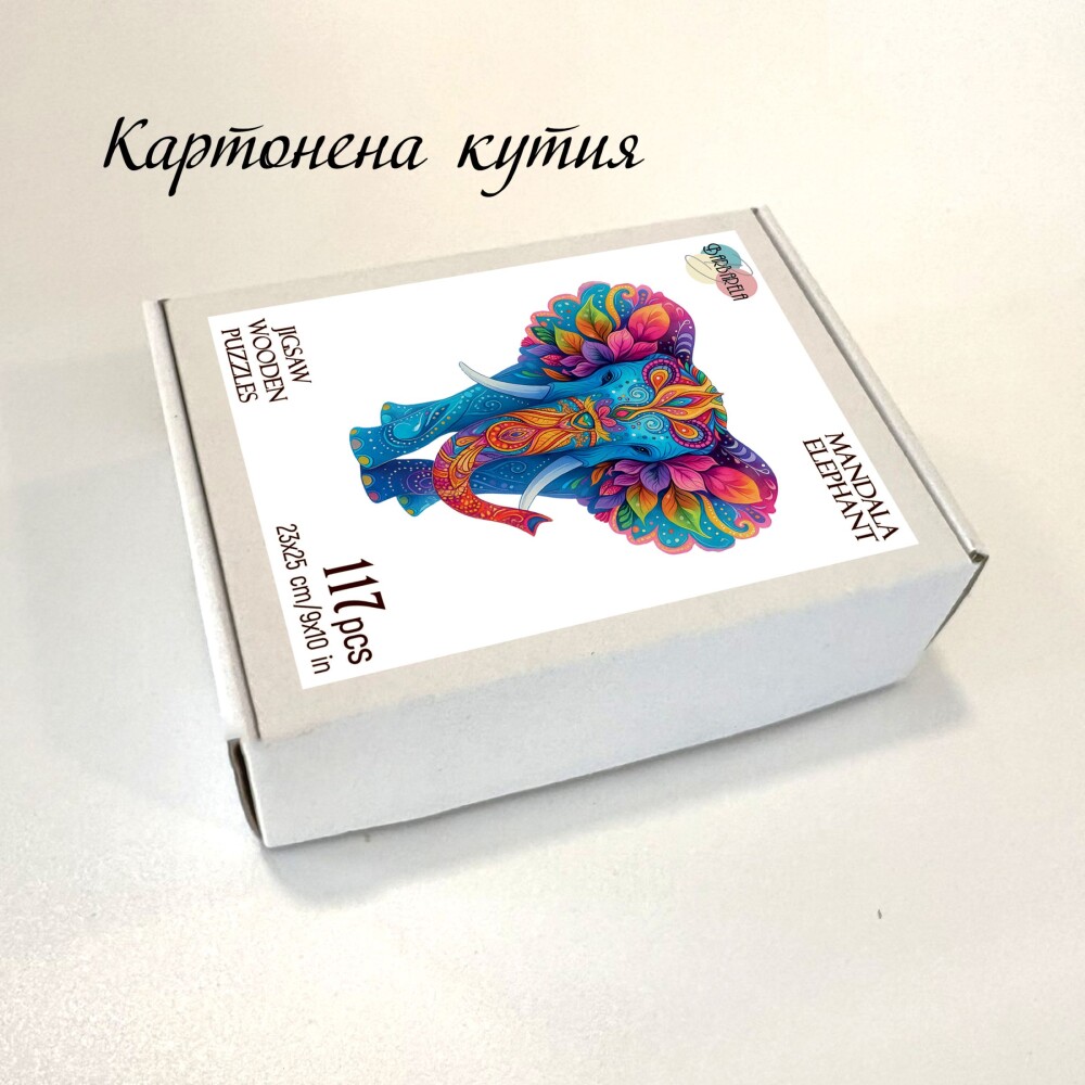 Дървен Арт пъзел "Слон Мандала" – с фигурни елементи