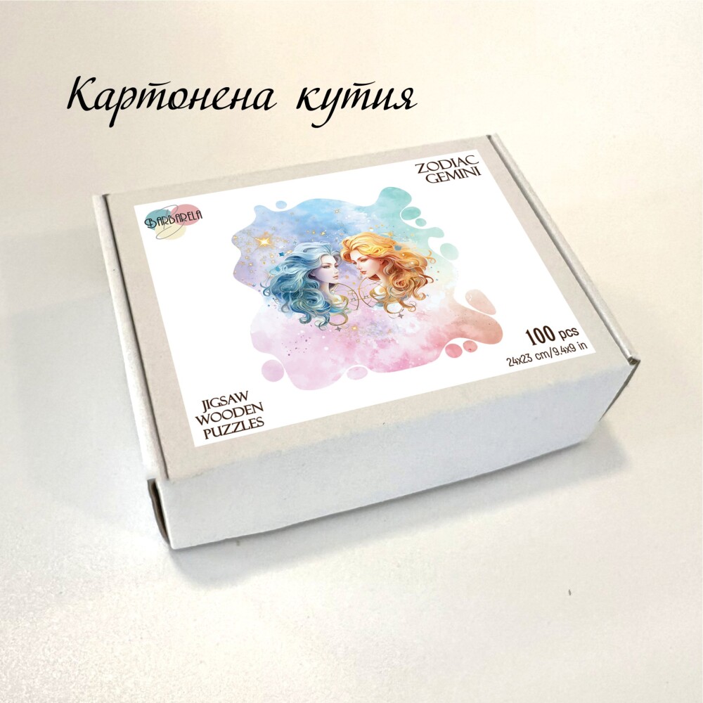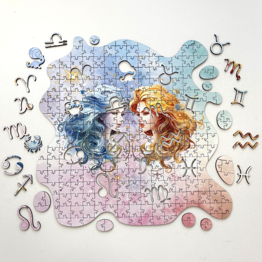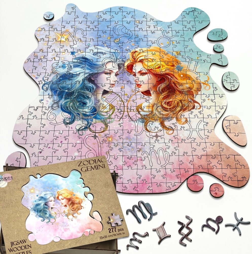 Дървен пъзел "Зодия Близнаци" – с фигурни елементи
