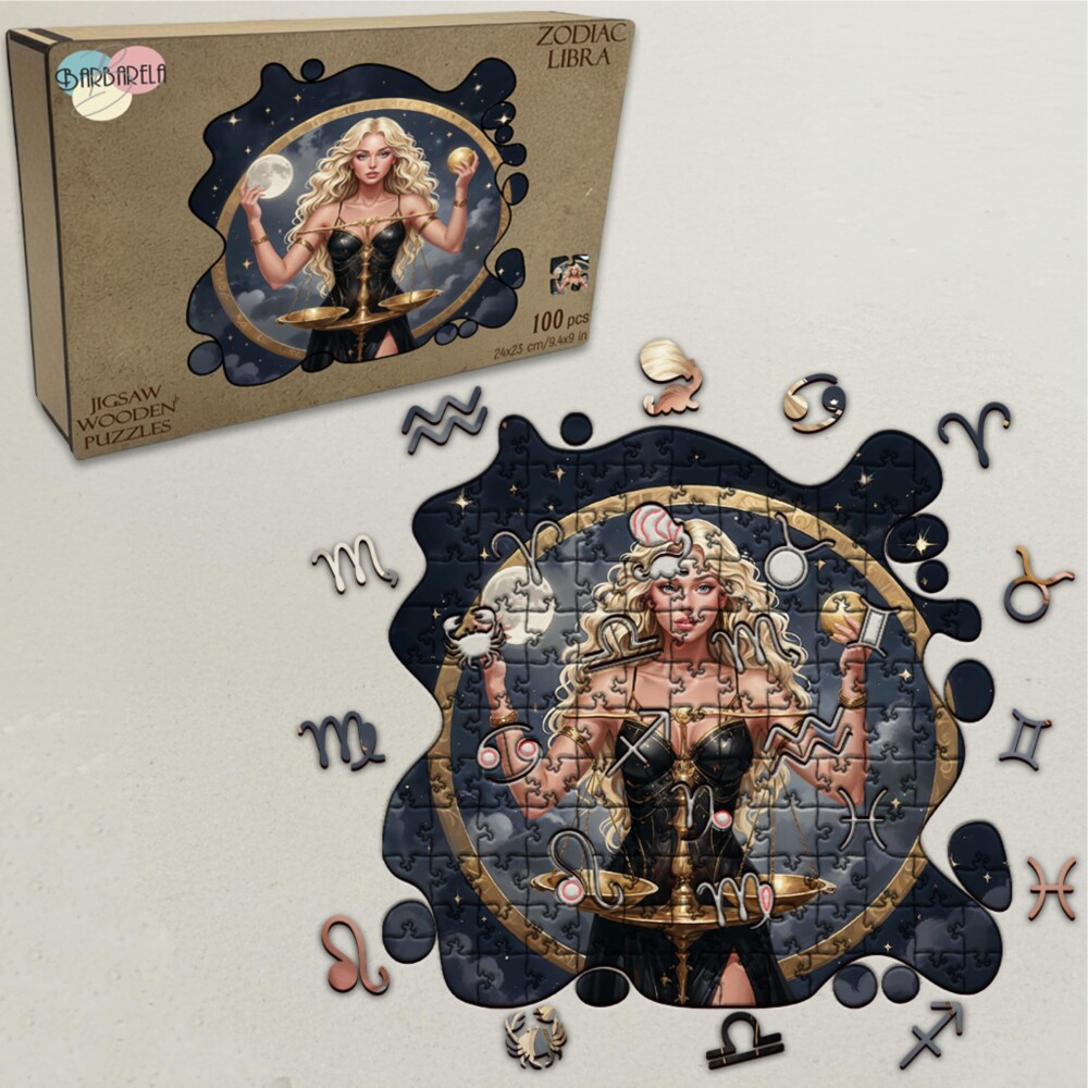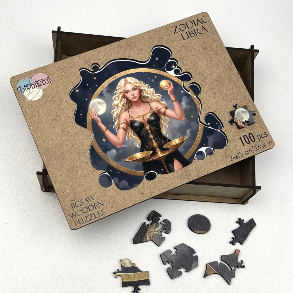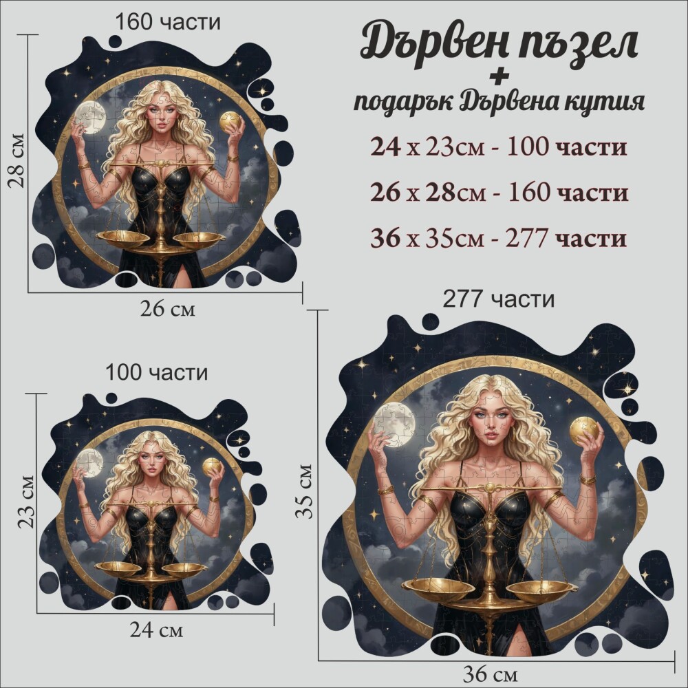 Дървен пъзел "Зодия Везни" – с фигурни елементи