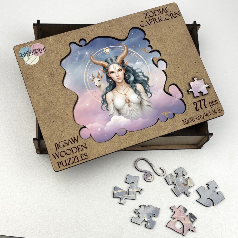 Дървен пъзел "Зодия Козирог" – с фигурни елементи