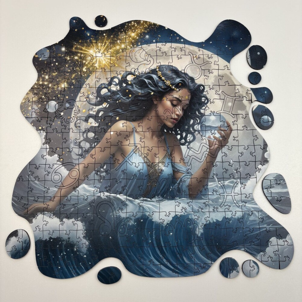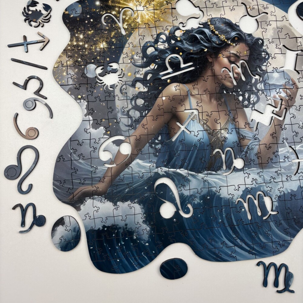 Дървен пъзел "Зодия Водолей" – с фигурни елементи
