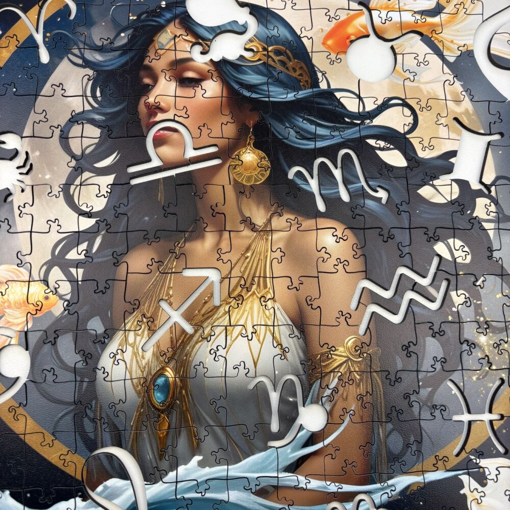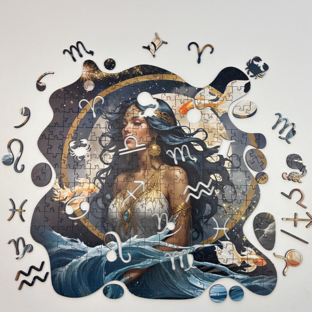 Изработва се от висококачествен плътен MDF с дебелина 3мм и директен UV печат, използващ най-съвременна технология и мастила от течен полимер. Това гарантира изключителна дълготрайност, ярки и наситени цветове на изображението. Пъзелът е изрязан по външния контур на изображението и съдържа фигурки на зодиакалните знаци от зодиака. Всяко парче е различно и сглобяването се превръща в истинско преживяване.