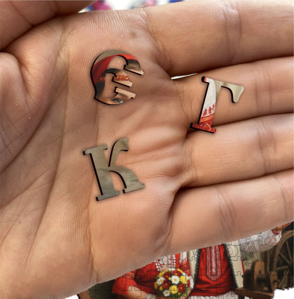 Изработва се от висококачествен плътен MDF с дебелина 3мм и директен UV печат, използващ най-съвременна технология и мастила от течен полимер. Това гарантира изключителна дълготрайност, ярки и наситени цветове на изображението. Пъзелът е изрязан по външния контур на картата на България и съдържа фигурки на буквите от поредицата.