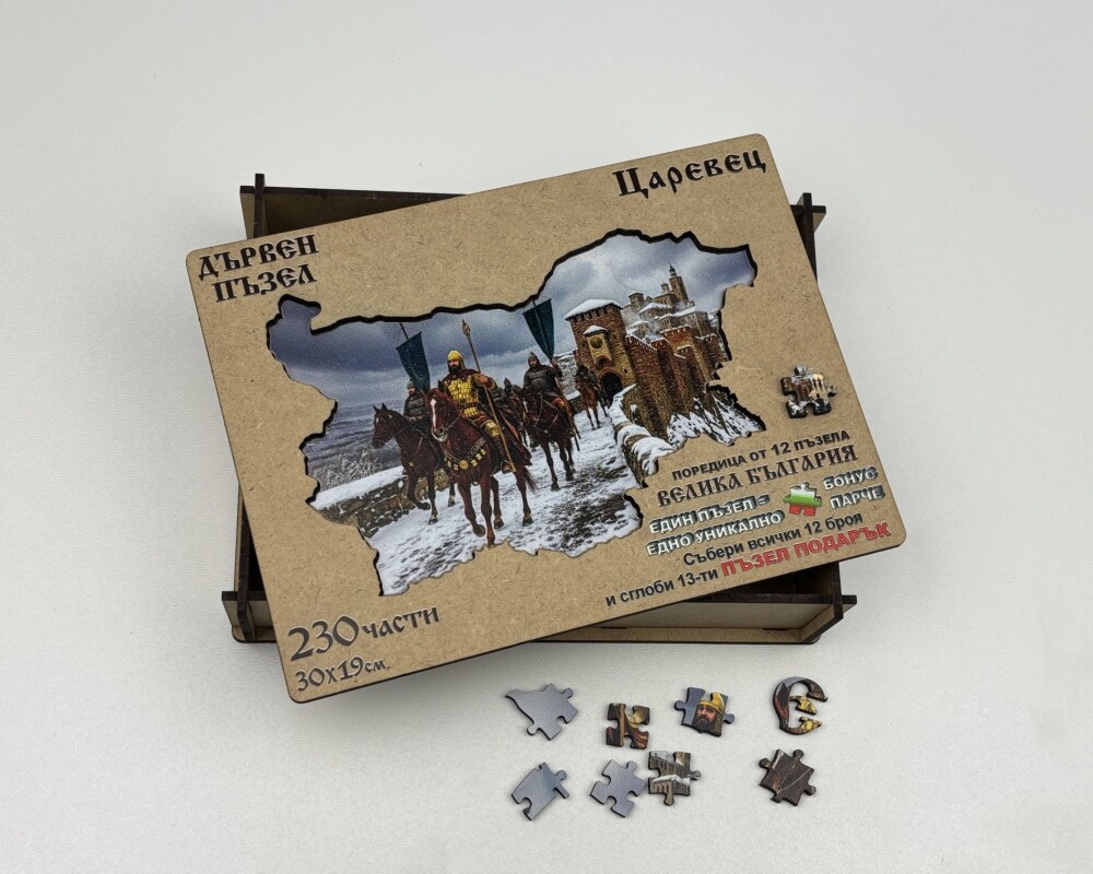 Поредица от 12 пъзела "Велика България" . Във всеки пъзел ще откриете едно уникално бонус парче - част от 13-ти пъзел. При събирането на всички 12 пъзела от поредицата, получавате 13-ти пъзел подарък