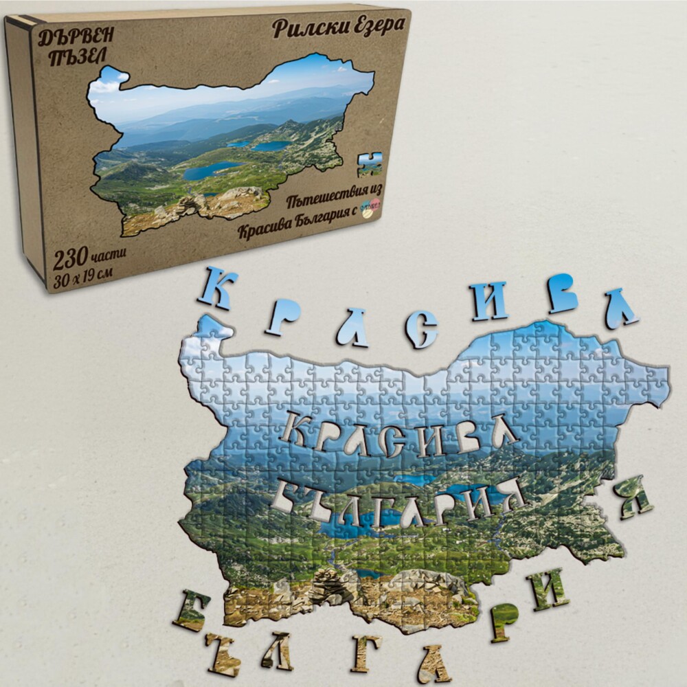 Дървен пъзел "Рилски езера", Пътешествие из "Красива България" – изрязан по външния контур на картата на България.