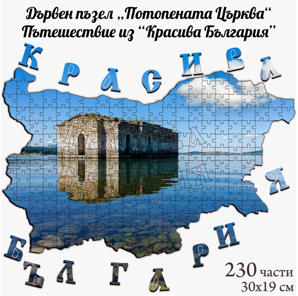 Дървен пъзел "Потопената църква", Пътешествие из "Красива България" – изрязан по външния контур на картата на България.