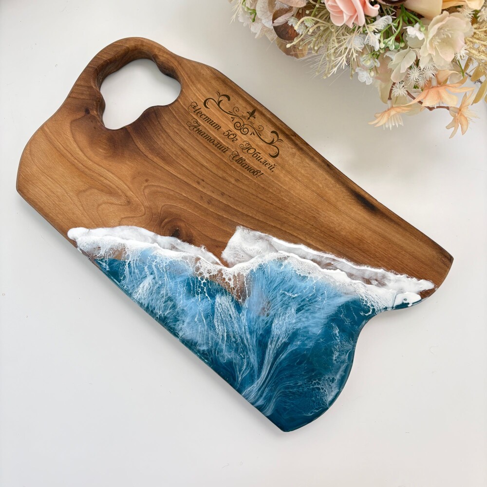 Дървена дъска от орех с епоксидна смола – за рязане и сервиране 010