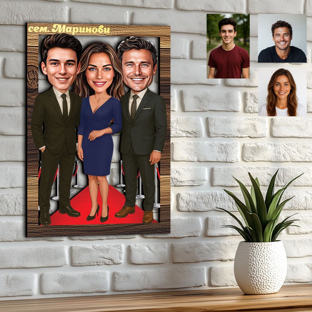 Карикатурата се изработва от МДФ с дебелина 8мм и UV печат, използващ най-съвременна технология и мастила от течен полимер. Това гарантира изключителна дълготрайност, ярки и наситени цветове на изображението.