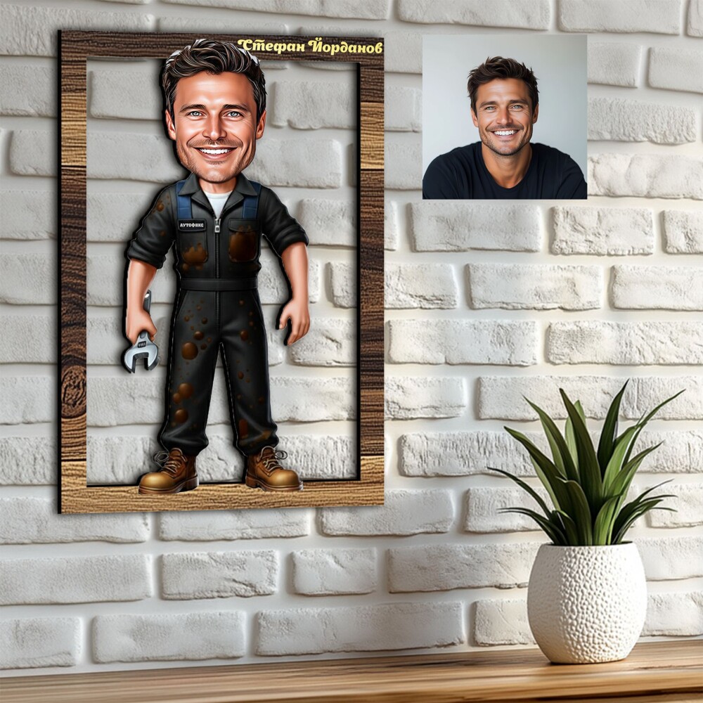 Карикатурата се изработва от МДФ с дебелина 8мм и UV печат, използващ най-съвременна технология и мастила от течен полимер. Това гарантира изключителна дълготрайност, ярки и наситени цветове на изображението.
