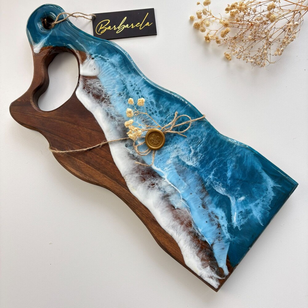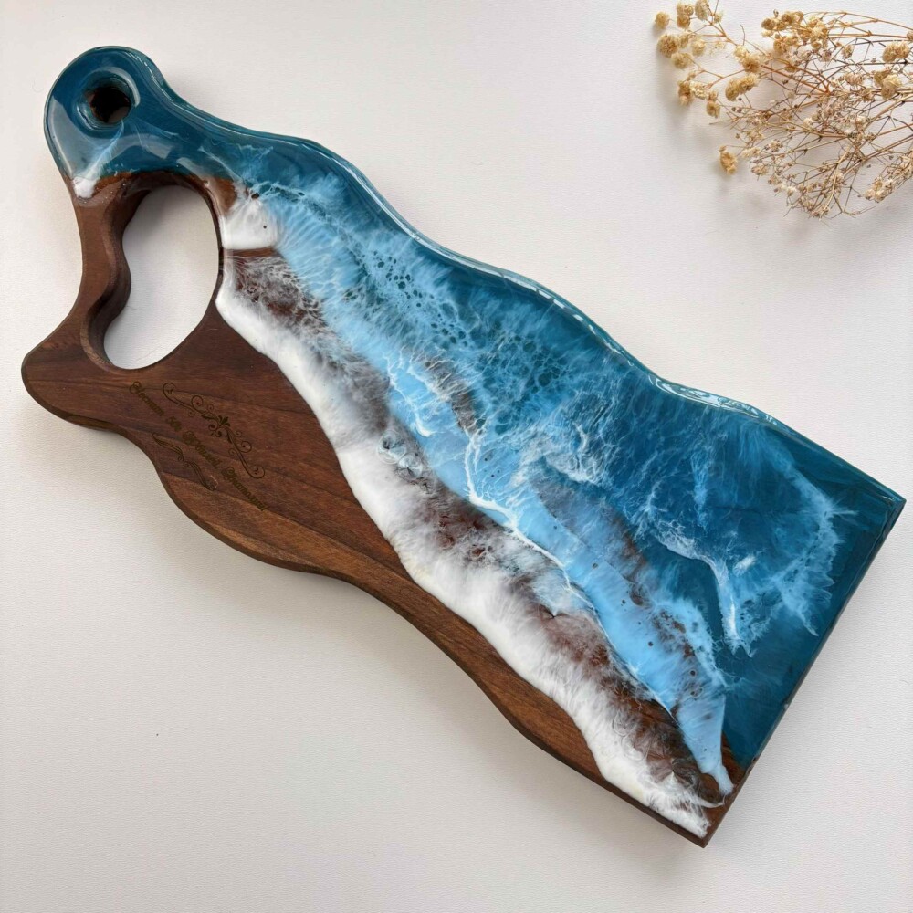 Дървена дъска от орех с епоксидна смола – за рязане и сервиране 016