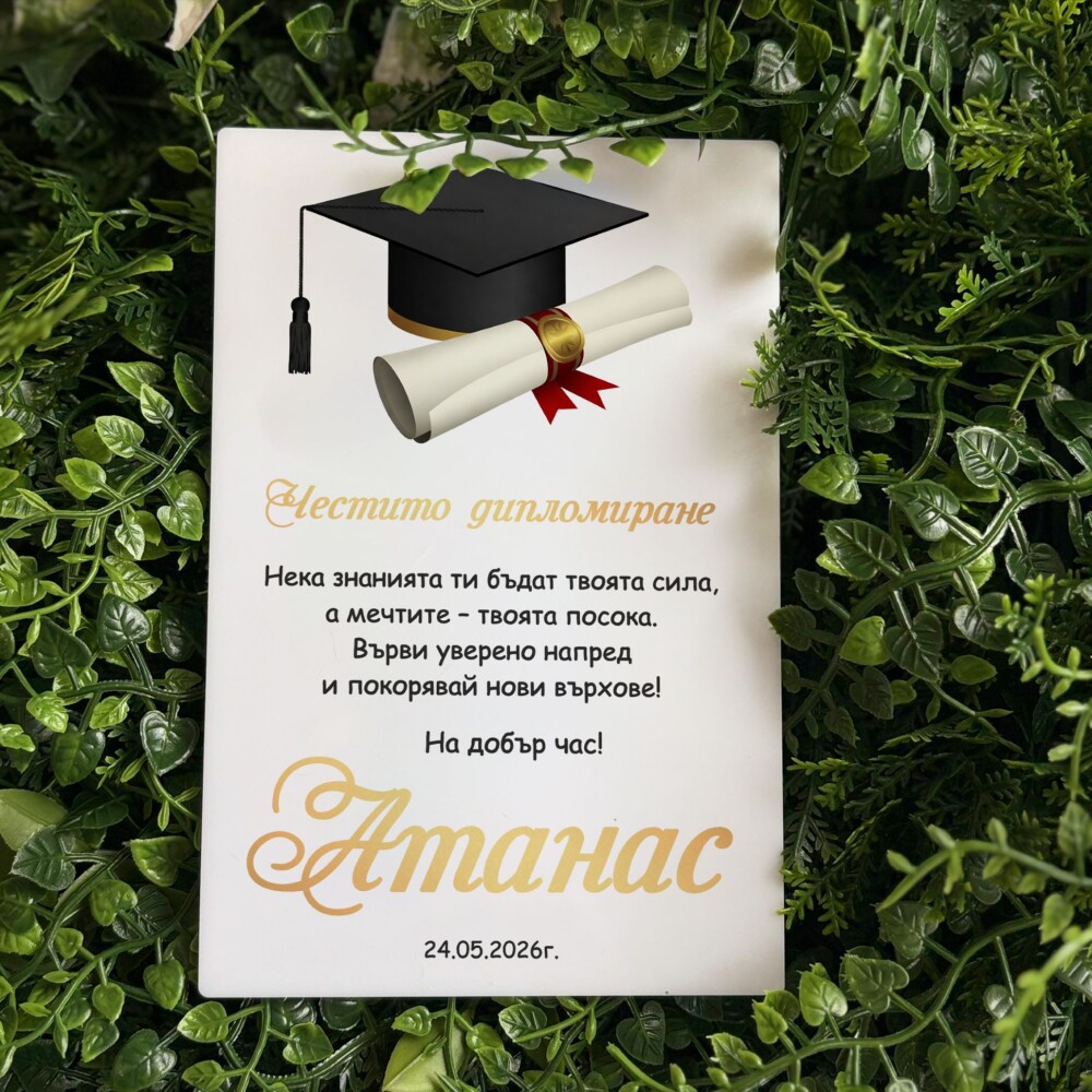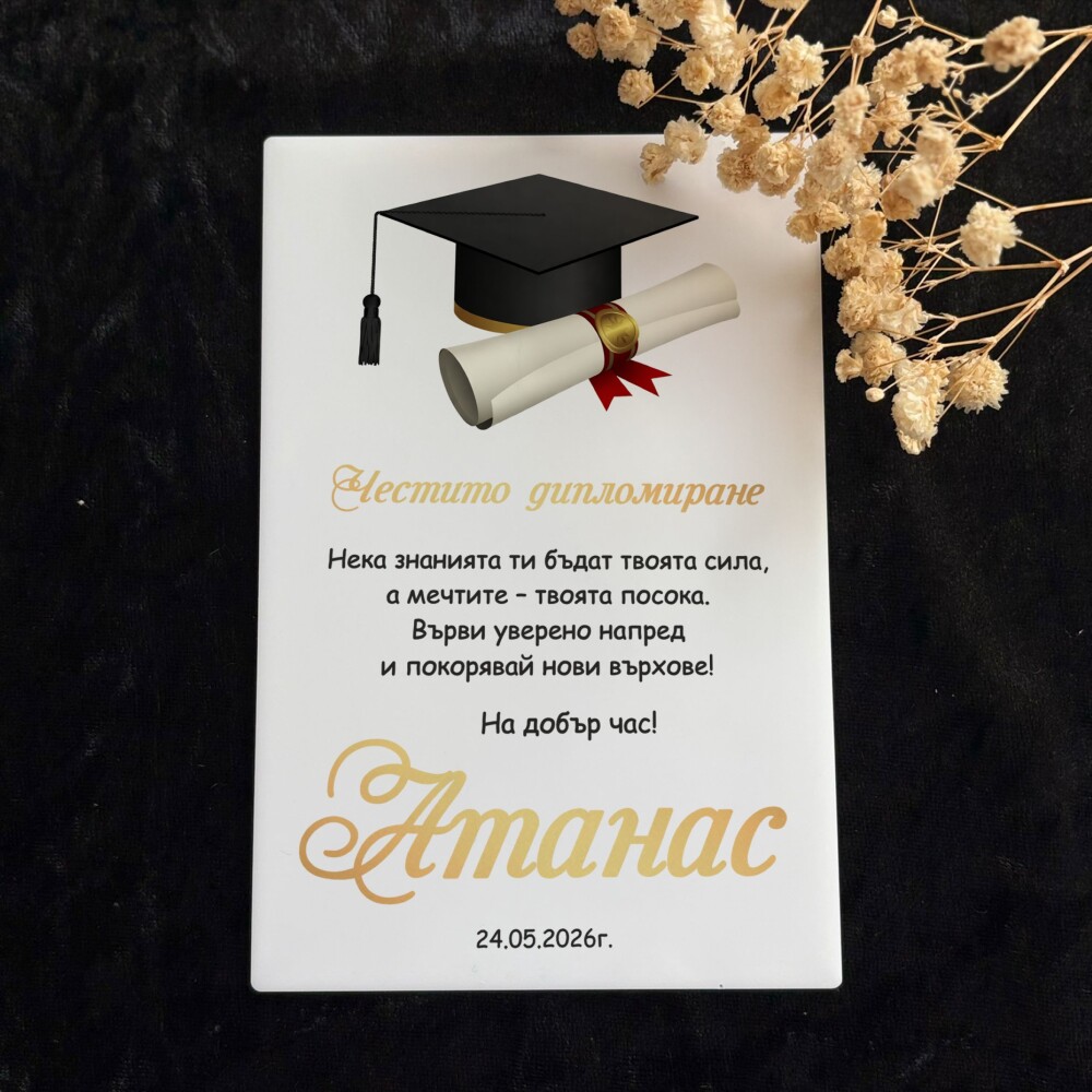 Стилна и изискана картичка, създадена да отбележи един от най-важните моменти – дипломирането.