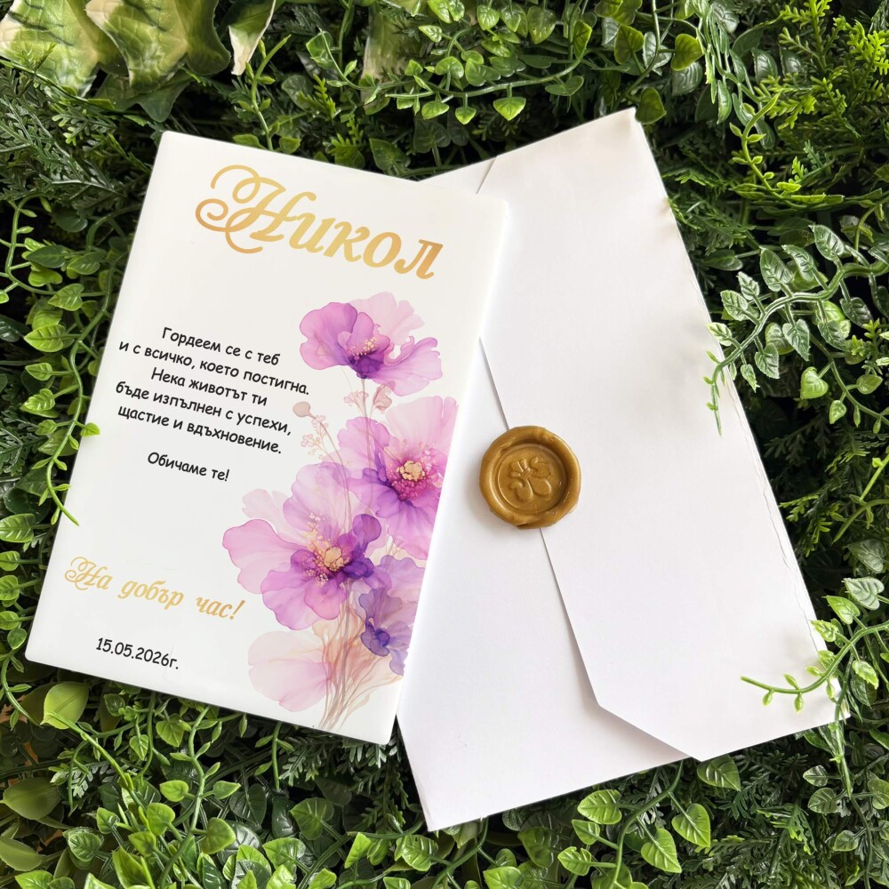 Стилна и изискана картичка, създадена да отбележи един от най-важните моменти – дипломирането.