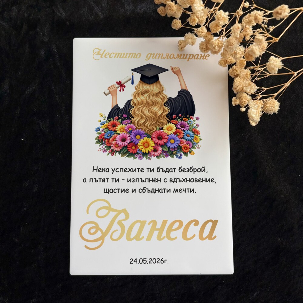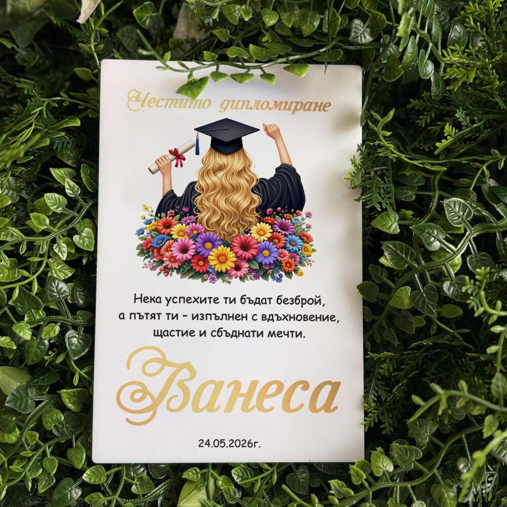 Картичка /Плакет за дипломиране с персонализация - 008