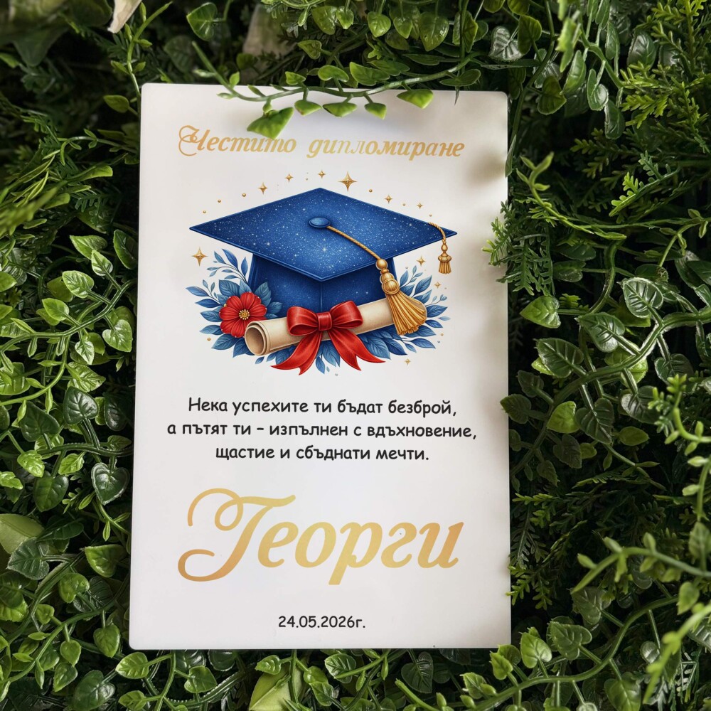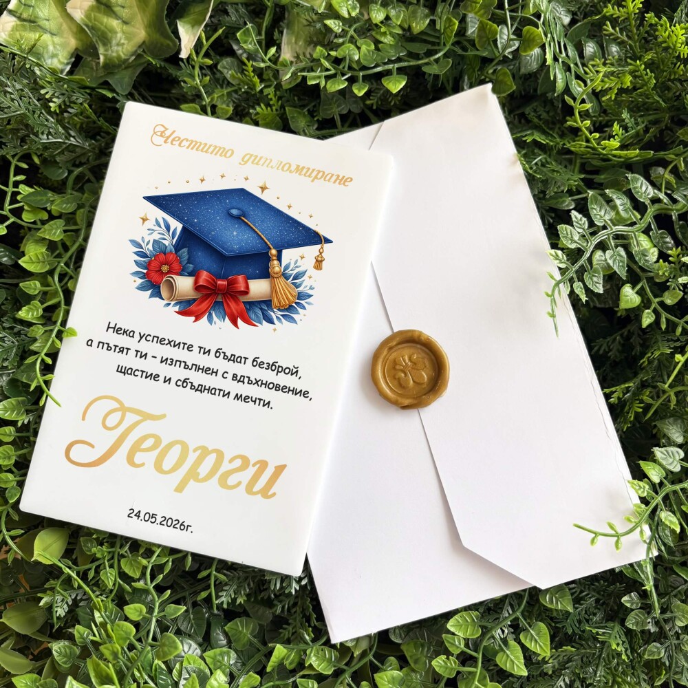 Стилна и изискана картичка, създадена да отбележи един от най-важните моменти – дипломирането.