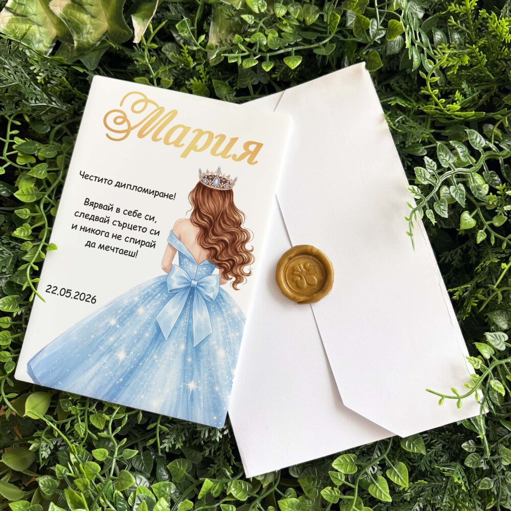 Стилна и изискана картичка, създадена да отбележи един от най-важните моменти – дипломирането.