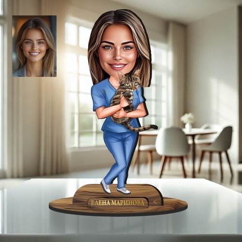 Персонализирана карикатура на жена ветеринар, изработена по ваша снимка.