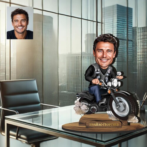 Персонализирана карикатура на мъж с мотор, изработена по ваша снимка.