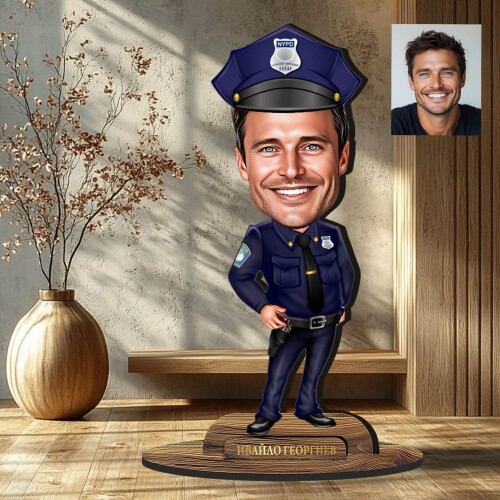 Персонализирана карикатура на мъж полицай, изработена по ваша снимка.