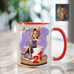 Чаша с карикатура на жена с торта - Честит рожден ден!