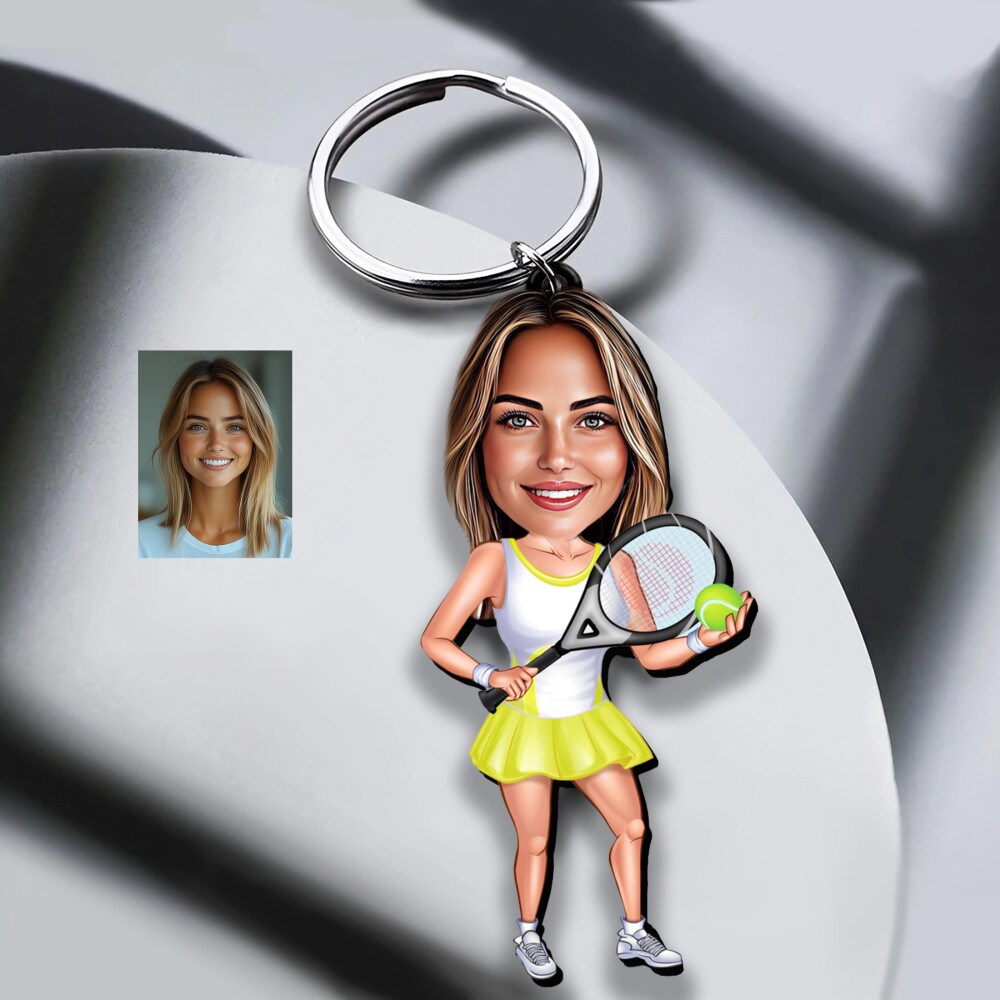 Персонализирана карикатура на жена тенисист, изработена по ваша снимка.