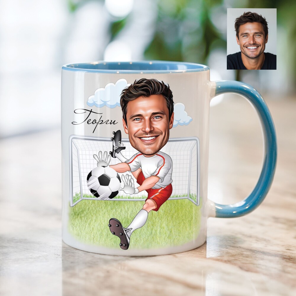 Чаша с карикатура на мъж футболист