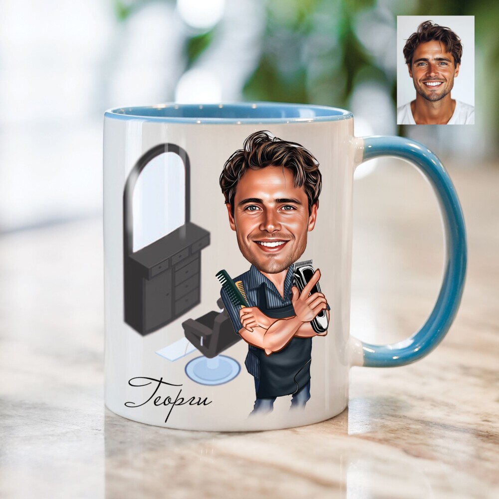 Чаша с карикатура на мъж фризьор - коафьор