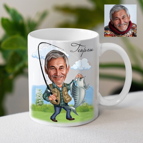 Чаша с карикатура на мъж рибар