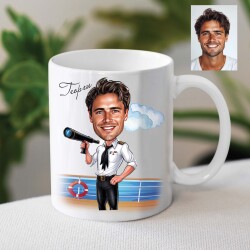 Чаша с карикатура на мъж - моряк с далекоглед