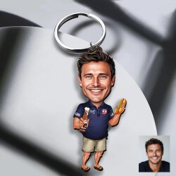 Персонализирана карикатура на мъж с бира и хотдог, изработена по ваша снимка.