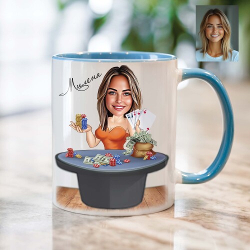 Чаша с карикатура на жена крупие - Рисков играч